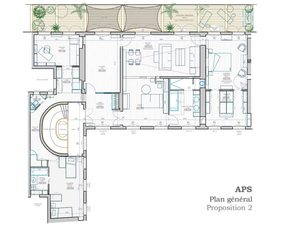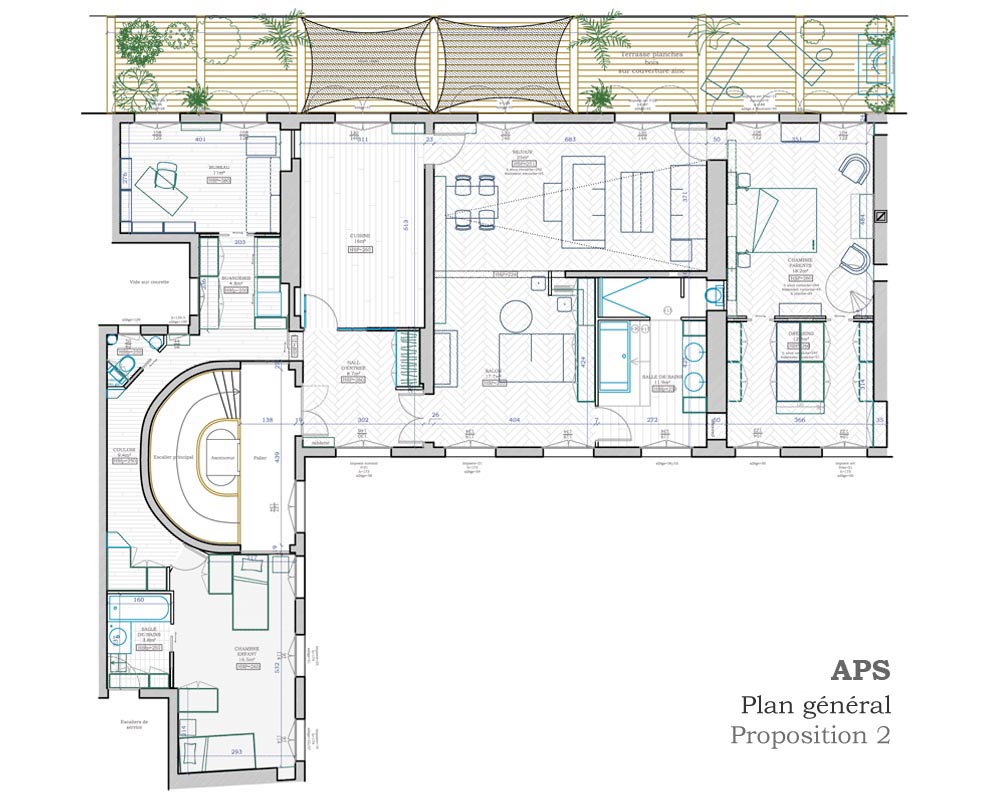 L’APS permet de mettre au propre l’esquisse retenue. Les plans passent alors au format informatique. Ils intègrent aussi toutes les évolutions soulevées lors de nos rdv, jusqu’à ce que le projet soit calé.