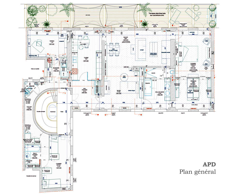 L’APD est le développement des plans APS. Ils sont à une échelle plus grande pour fournir plus de détails. Cette phase intègre les coupes et élévations nécessaires à la perception des volumes imaginés. A ce niveau nous travaillons également le plan électrique. Ce dossier détaillé permettra aux entreprises de proposer un chiffrage précis et adapté à votre projet final.