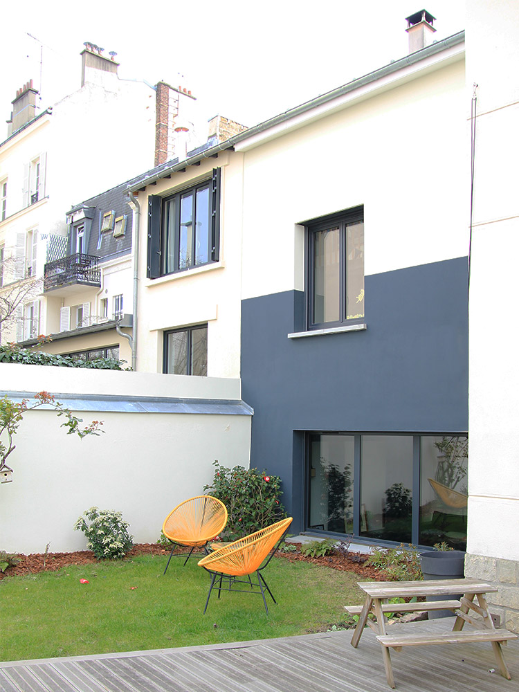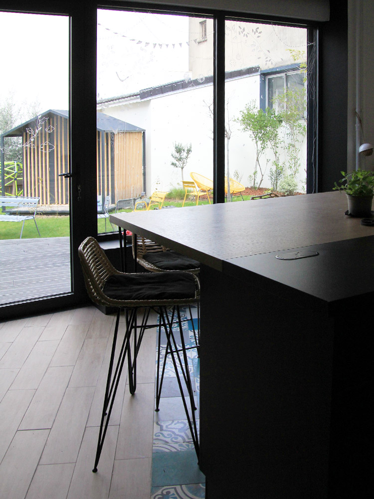 Pour apporter plus de lumière, une grande baie a été créée, modifiant ainsi la façade de la maison sur le jardin.
