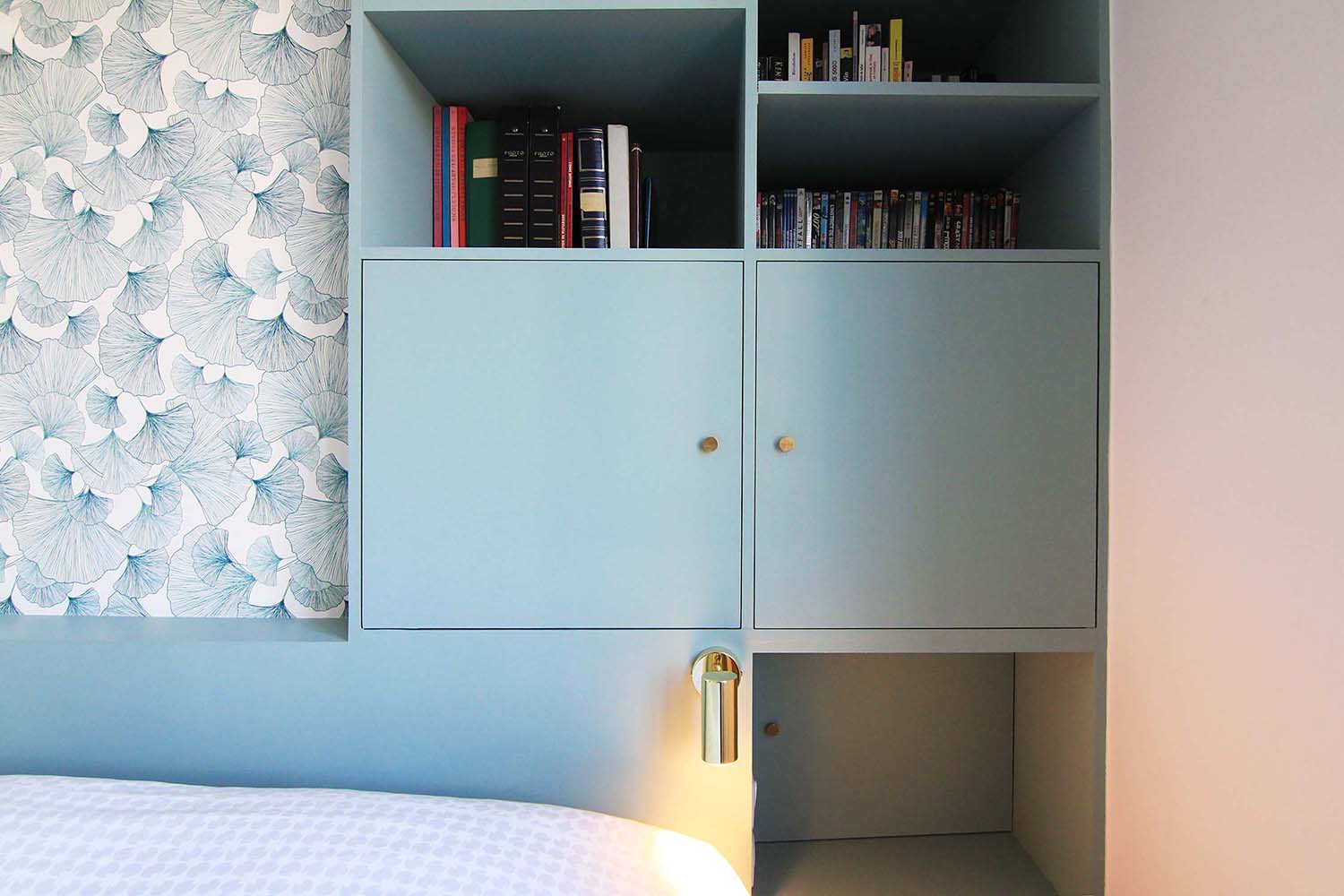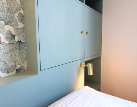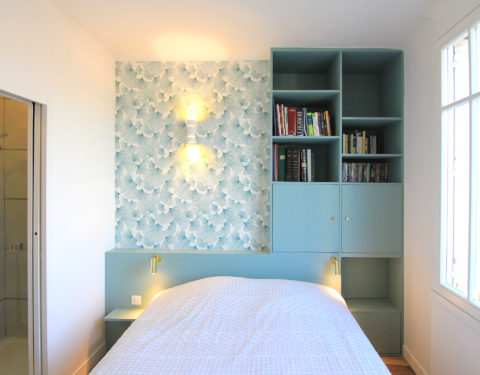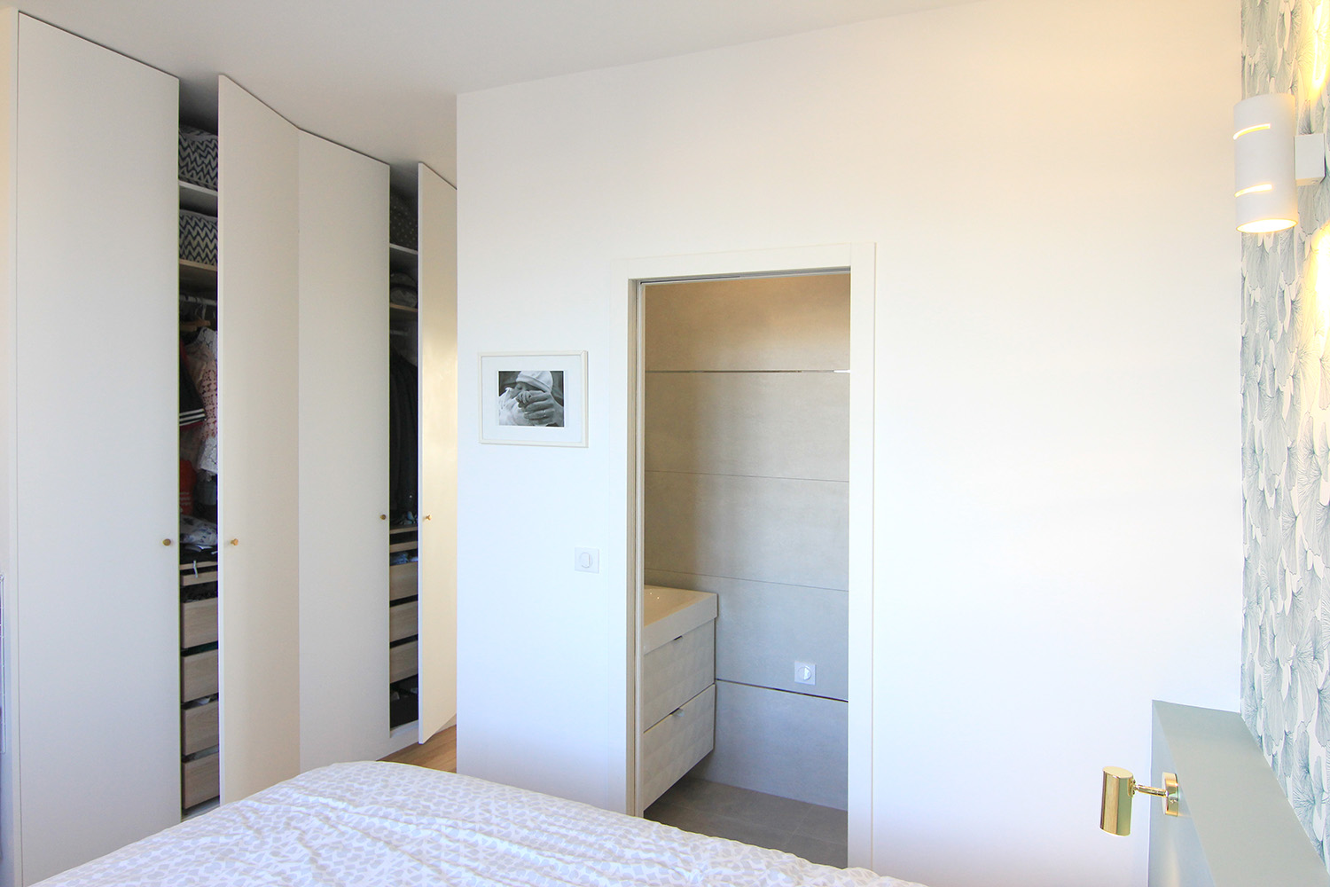 Enfin, on a résolu la problématique des 2 chambres existantes communicantes. Grâce à un petit couloir et l’ouverture d’un mur porteur, la chambre du fond est devenue indépendante !
