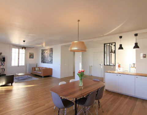 Cet appartement de 120m², au 4ème étage dégagé, profite déjà d’un bel ensoleillement. Cependant il faut revoir certaines choses !