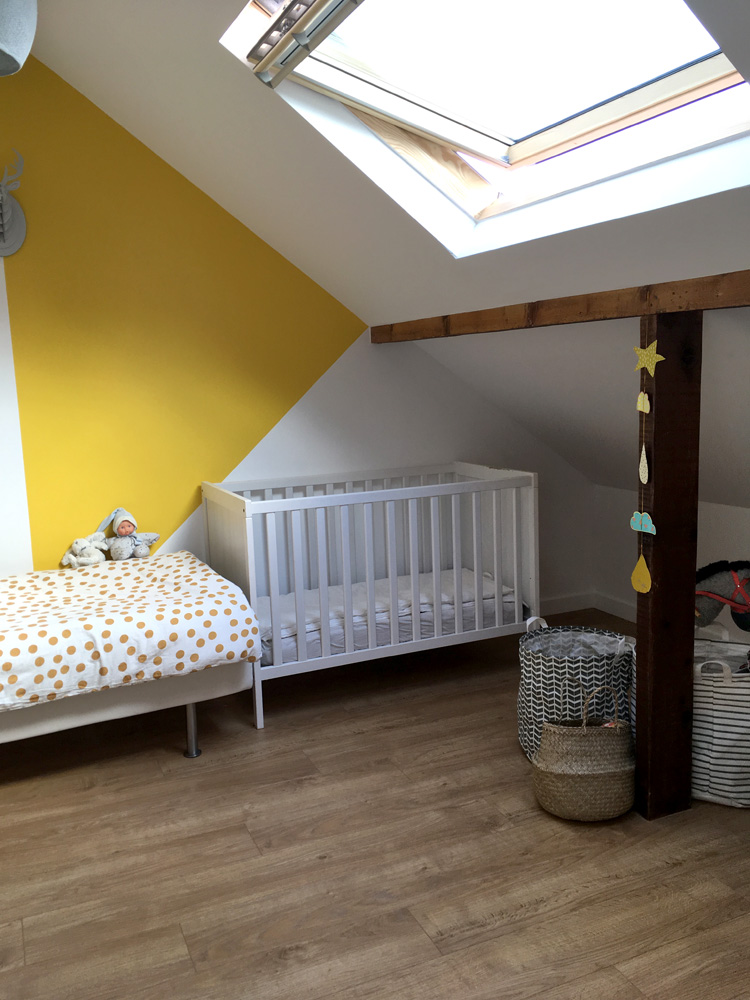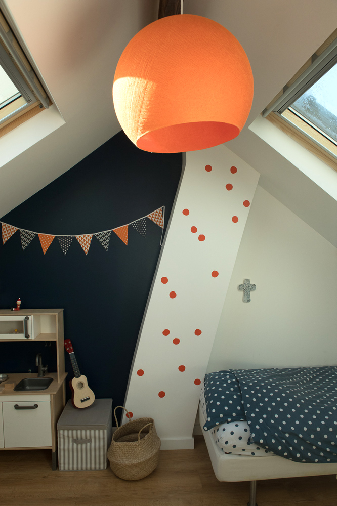 Tout en haut, le grenier a cédé sa place pour 2 jolies chambres d’enfants, nichées sous les rampants et baignées de lumière par les grands Velux.