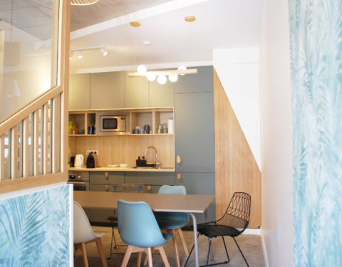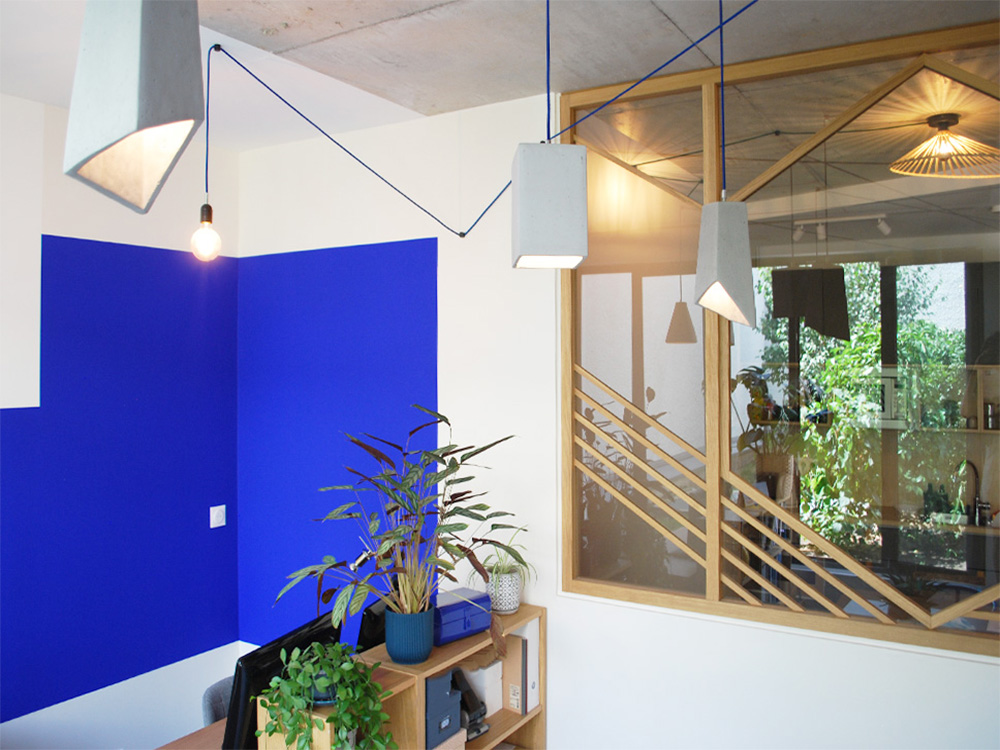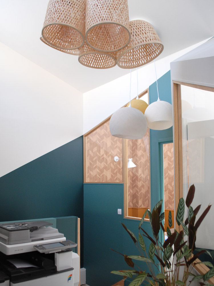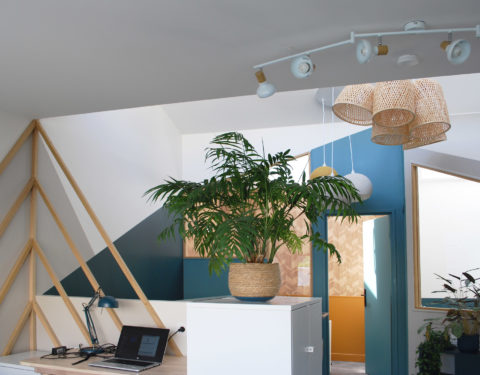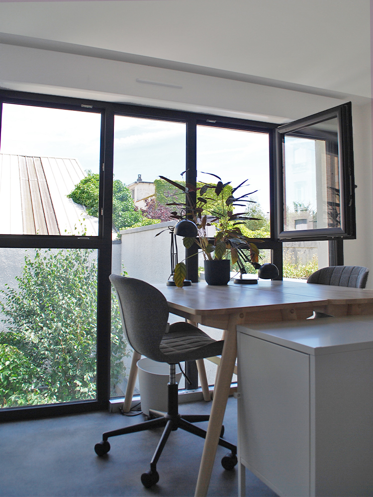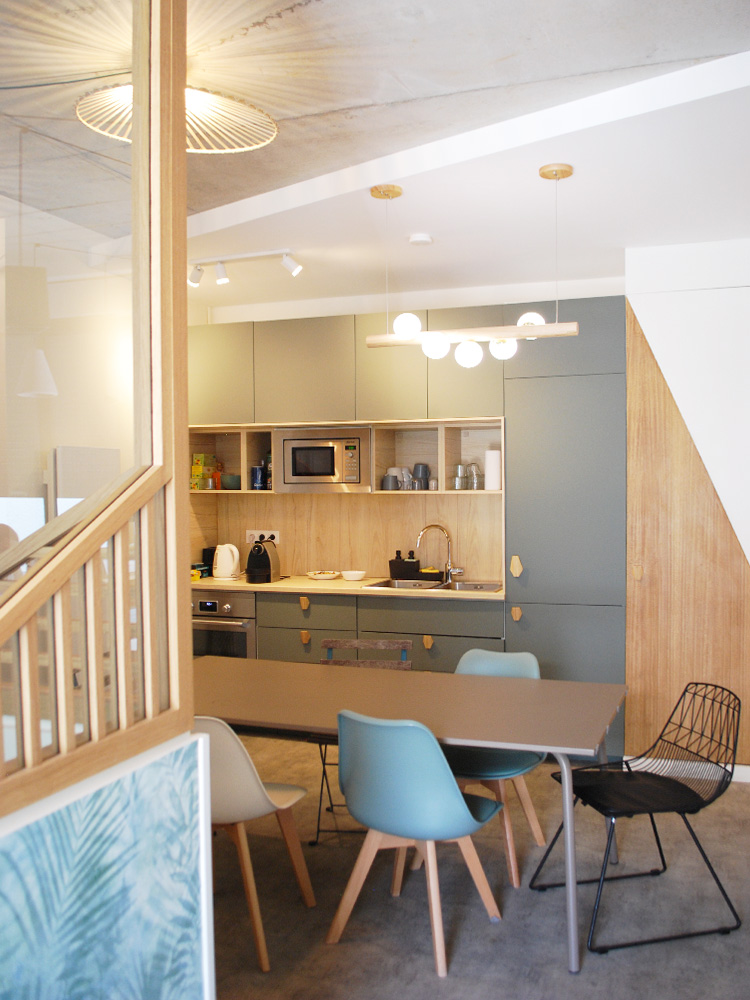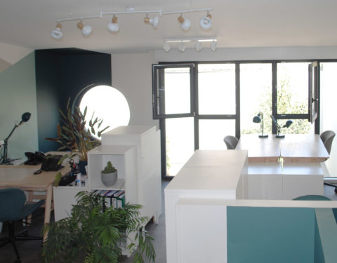 Avec deux plateaux en duplex, nous décidons, en plus de notre agence d’architecture intérieure, d’y installer un coworking en haut pour partager nos bureaux.