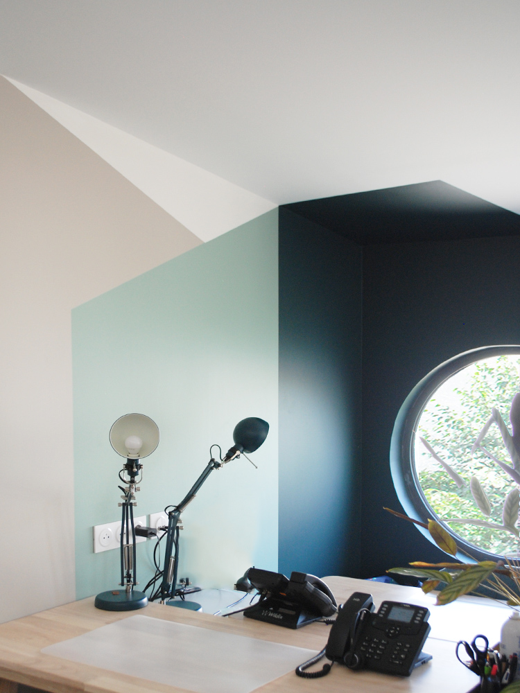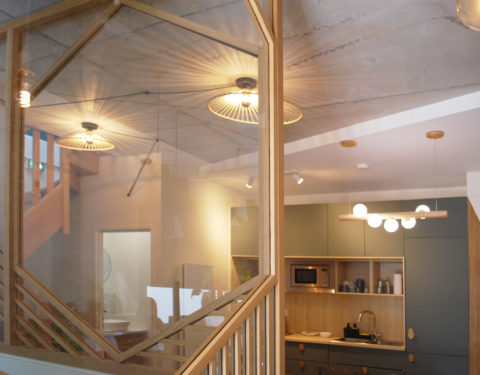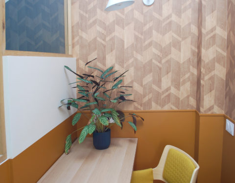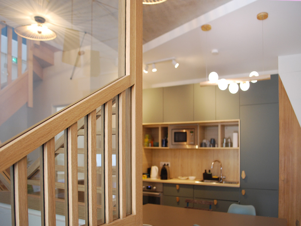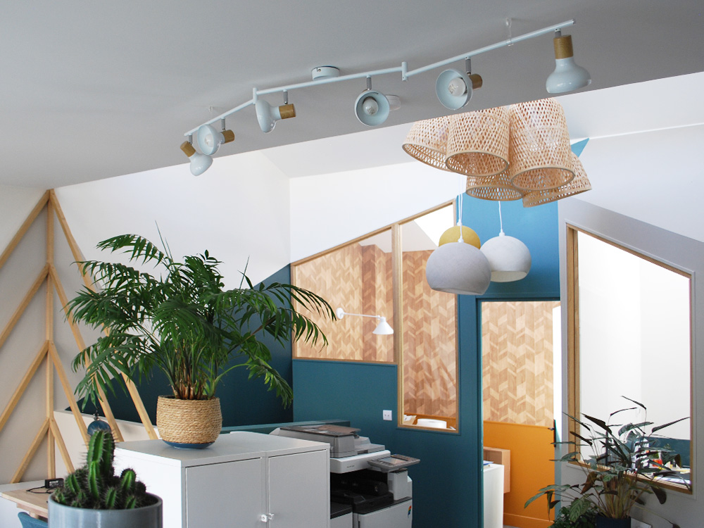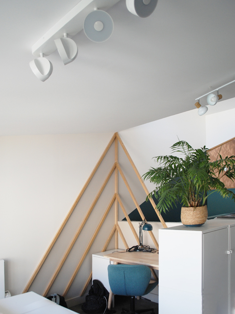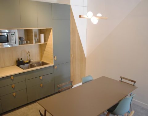 Avec deux plateaux en duplex, nous décidons, en plus de notre agence d’architecture intérieure, d’y installer un coworking en haut pour partager nos bureaux.