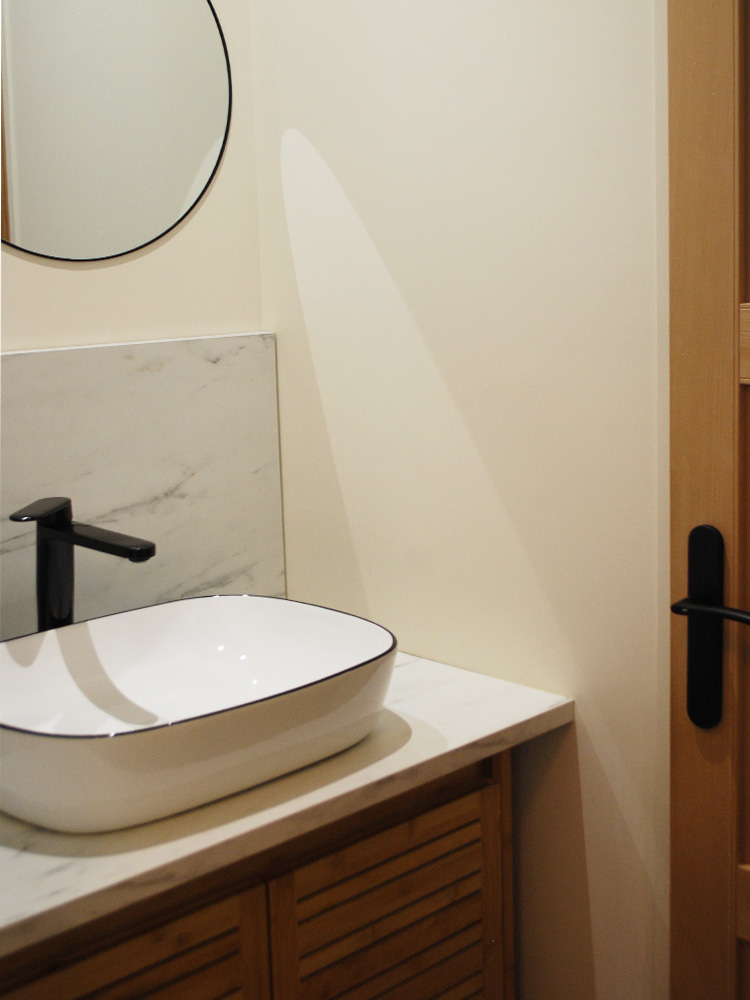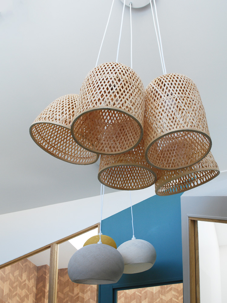 Une ambiance végétale, harmonisée via le bois, le vert tendre, le rotin, les papiers peints et la nature, sont propice à une ambiance apaisée.