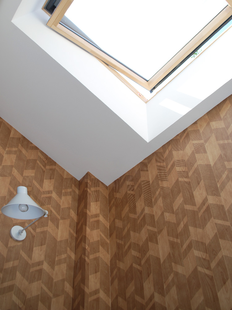 Au RDC, se trouve notre bureau avec une autre verrière, cette fois si intérieure, de forme hexagonale (clin d’œil à notre logo). Elle permet une certaine isolation (tout en laissant passer la lumière) avec la salle à manger qui peut servir de salle de réunion. A coté se trouvent la cuisine et les sanitaires.