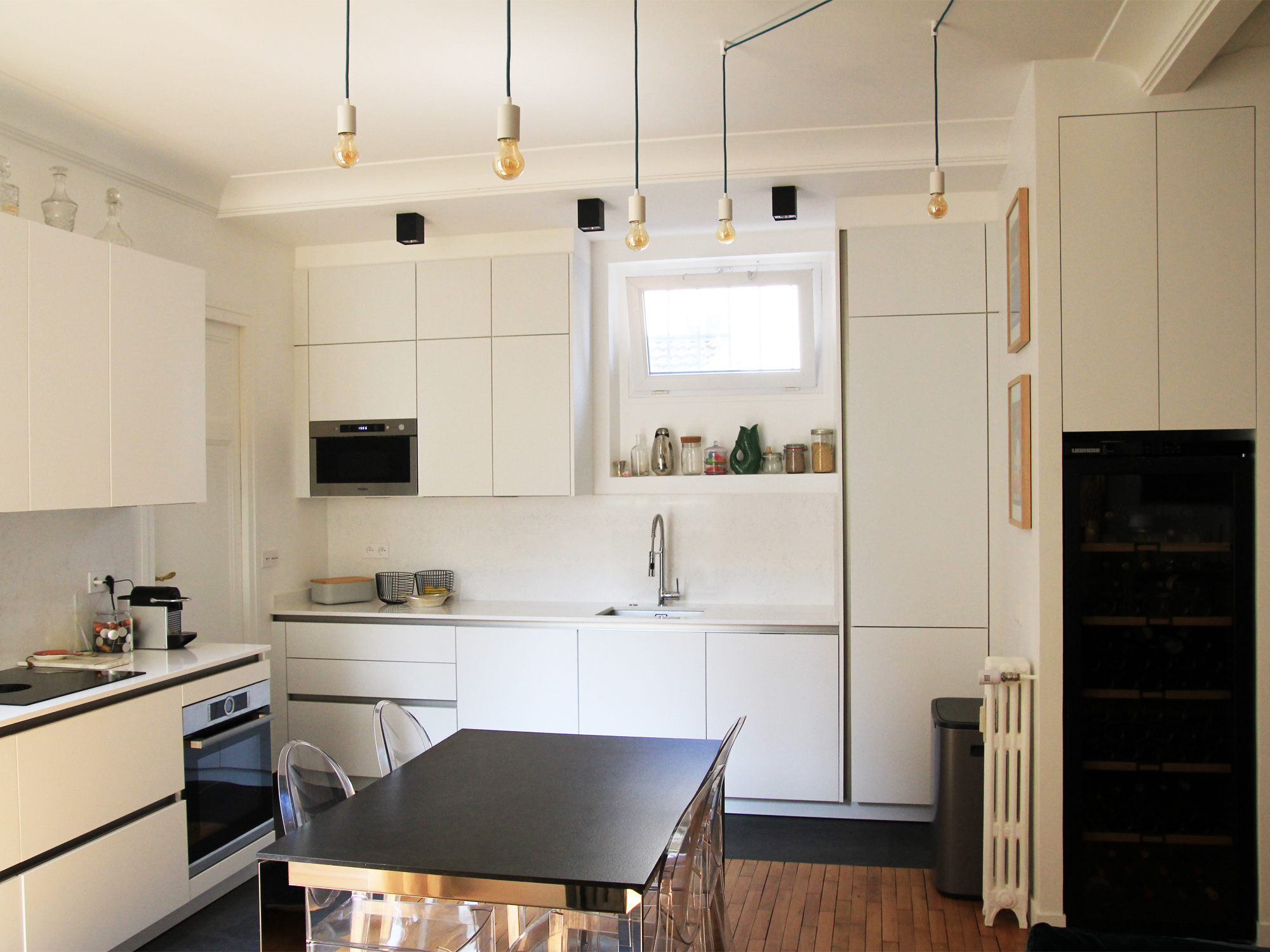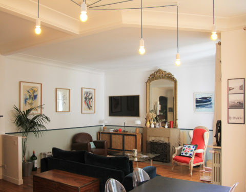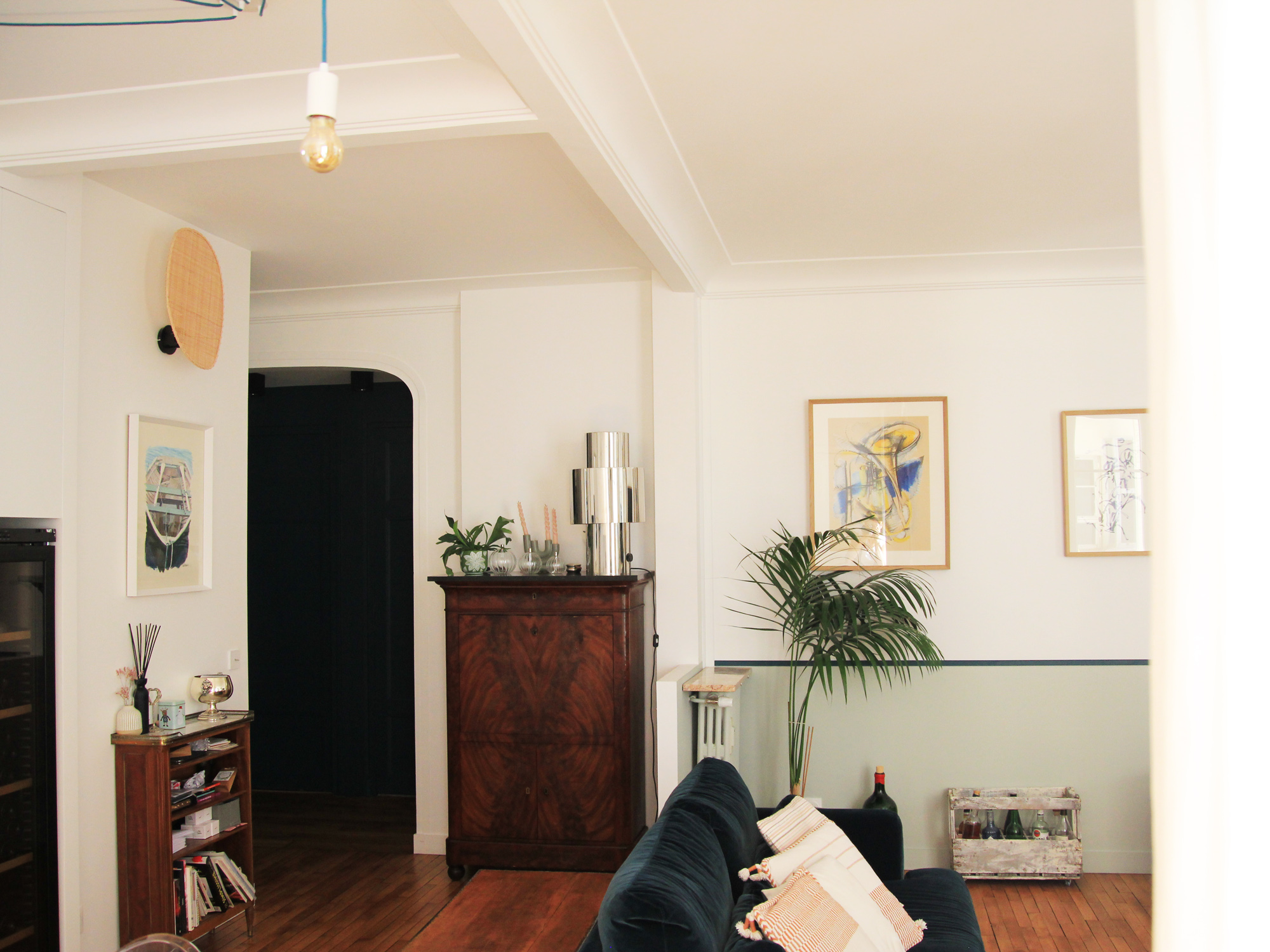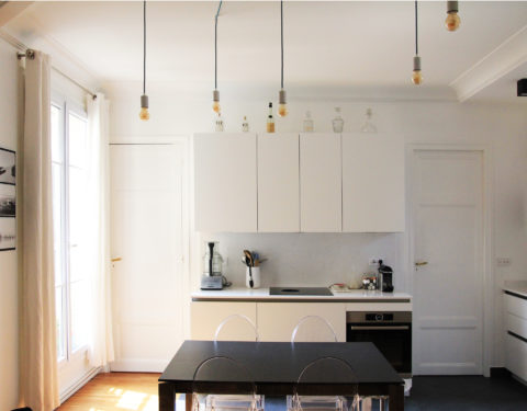 Lumière, ouverture, espace. Pourtant l’appartement ne semblait pas prédisposé ! Il était particulièrement sombre, très encombré, avec des pièces petites parfois sans fenêtres ! Challenge pour cet appartement de 77 m² … On ne résiste pas à vous mettre quelques photos d’avant pour vous faire une idée (déroulez tout en bas !)