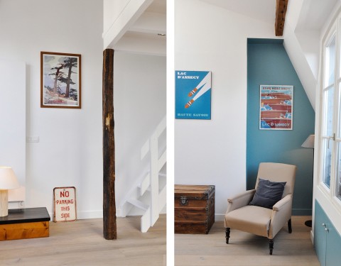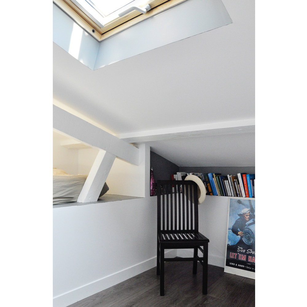 A l’étage, chaque recoin est aménagé pour maximaliser les rangements.
