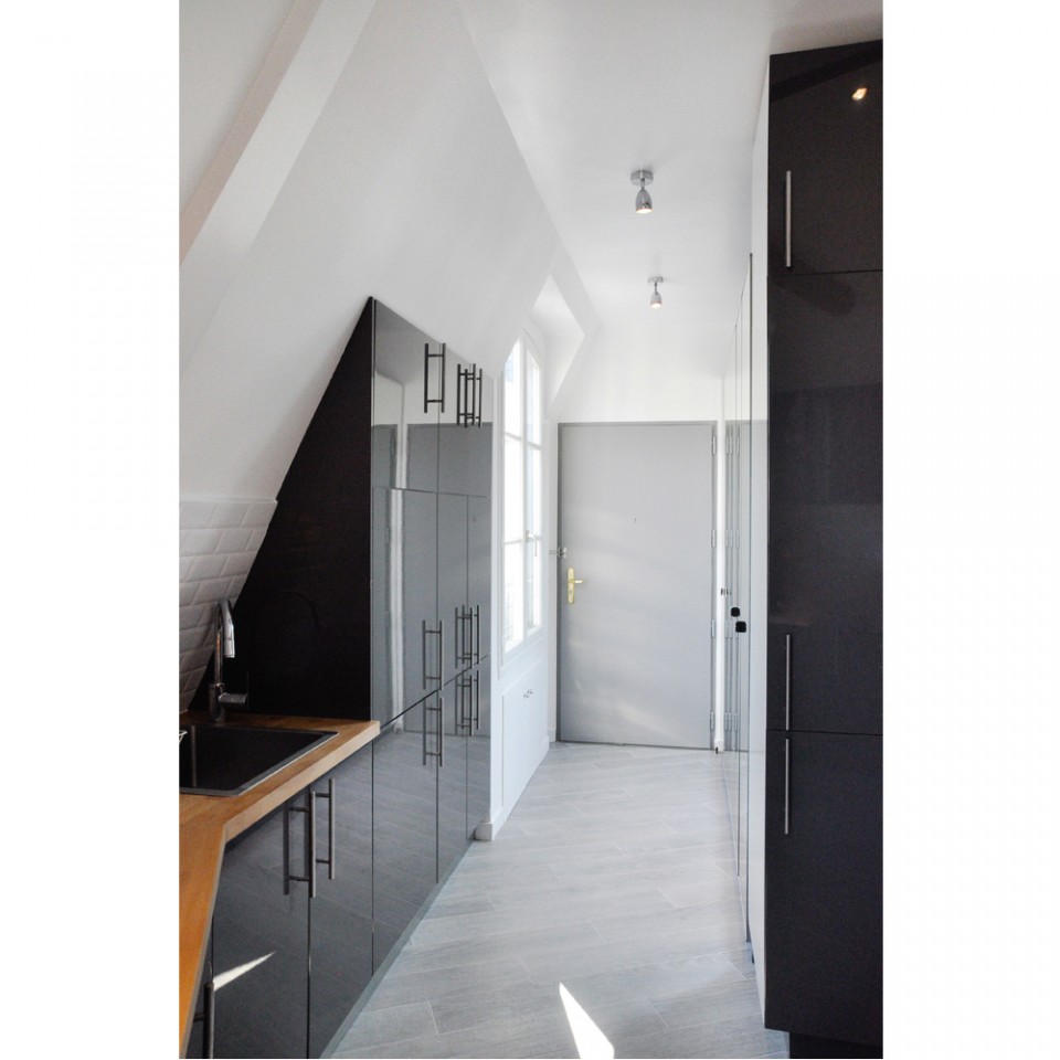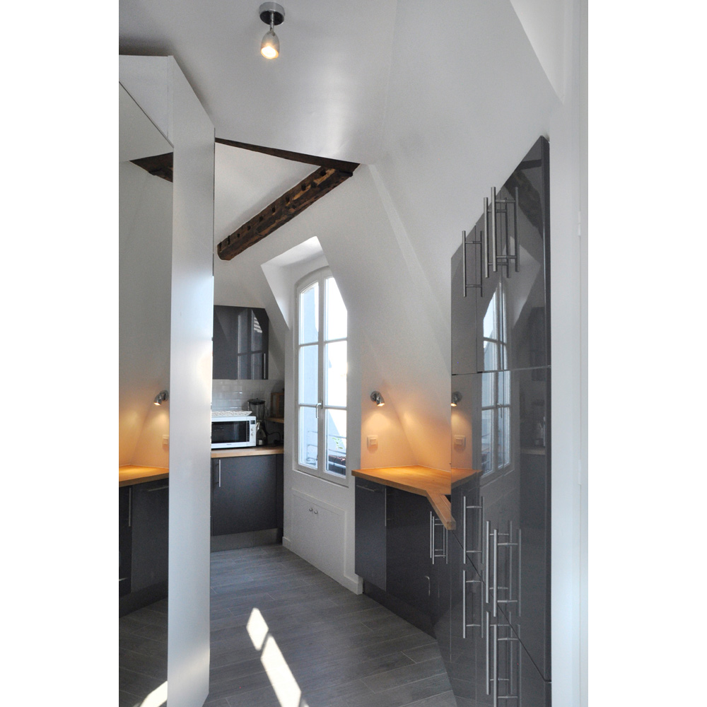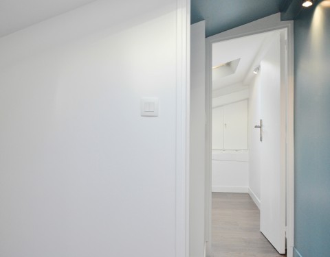 A la base, il y avait 4 chambres de service indépendantes séparées par un couloir, une possibilité d’ouvrir les combles et de condamner l’accès de l’escalier de service pour gagner un peu de surface.